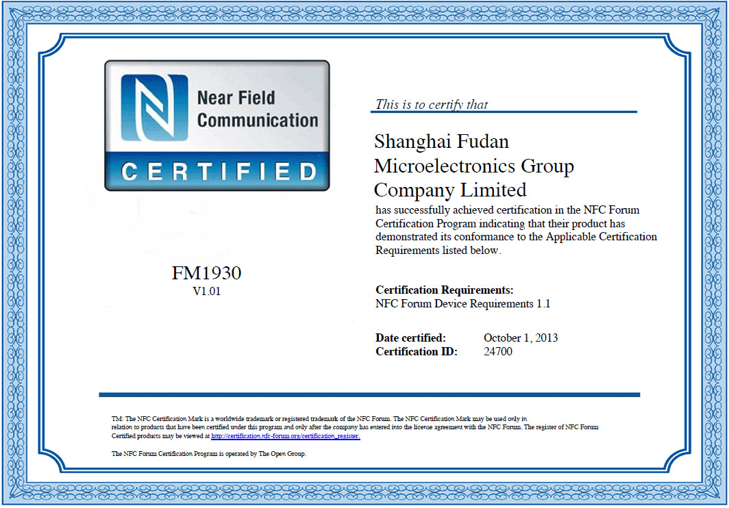 公司設(shè)計(jì)的NFC控制芯片F(xiàn)M1930,10月1日獲國(guó)際組織NFC論壇的認(rèn)證。這是國(guó)內(nèi)首款通過NFC論壇認(rèn)證的NFC控制芯片。