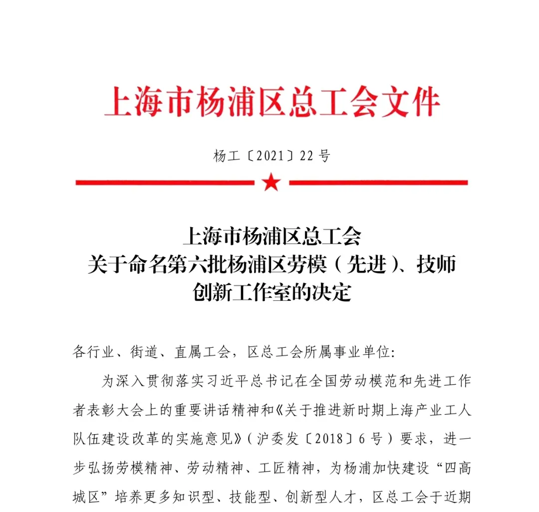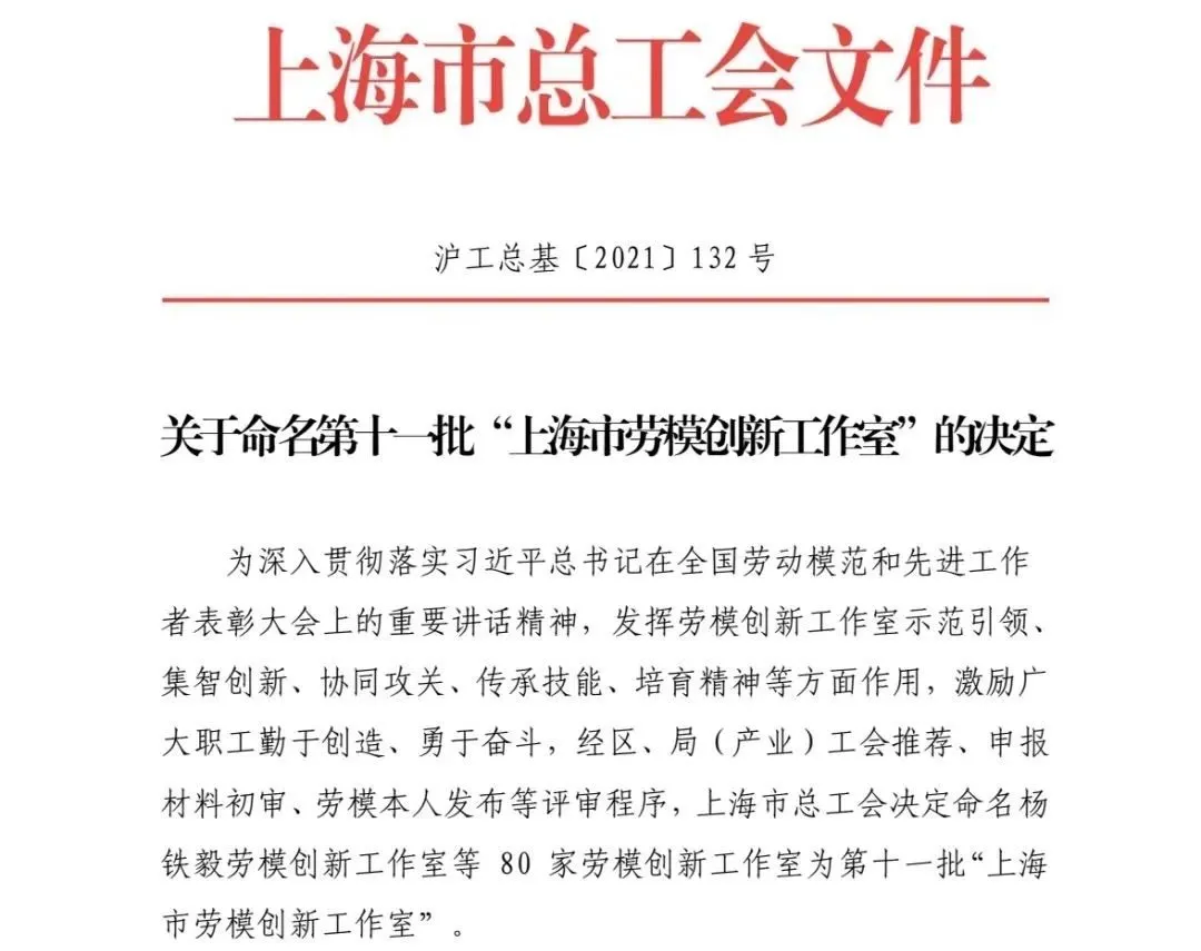 為深入貫徹落實習近平總書記在全國勞動模范和先進工作者表彰大會上的重要講話精神,發揮勞模創新工作室示范引領、集智創新、協同攻關、傳承技能、培育精神等方面作用,激勵廣大職工勤于創造、勇于奮斗的勞動精神,上海市總工會于2021年8月發布《關于命名第十一批“上海市勞模創新工作室”的決定》,上海復旦微電子集團股份有限公司“王立輝勞模創新工作室”被命名為“上海市勞模創新工作室”。