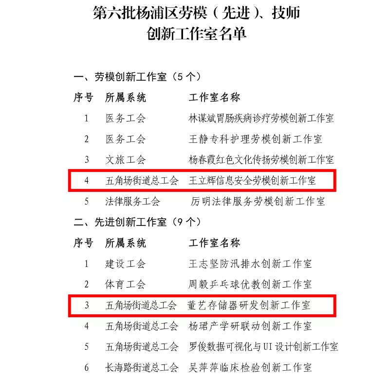 近日,楊浦區總工會發布《關于命名第六批楊浦區勞模(先進)、技師創新工作室的決定》。復旦微電子集團“王立輝信息安全勞模創新工作室”被命名為“楊浦區勞模創新工作室”,“董藝存儲器研發先進創新工作室”被命名為“楊浦區先進創新工作室”。